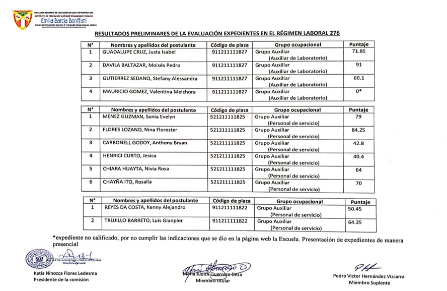 Publicación preliminar del cuadro de méritos – Contrato de Personal Administrativo 276 PROCESO DE CONTRATACIÓN DEL PERSONAL ADMINISTRATIVO BAJO EL REGIMENLABORAL DEL DECRETO LEGISLATIVO 276