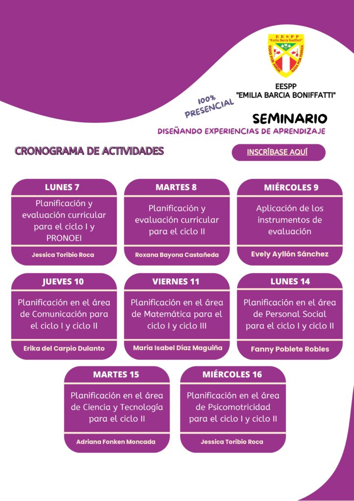 SEMINARIO – Diseño Experiencias de Aprendizaje SEMINARIO – Diseño Experiencias de Aprendizaje Enlace para pre-inscripciones : SEMINARIO – Diseño Experiencias de Aprendizaje