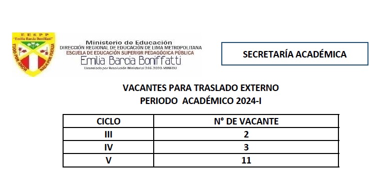 Vacantes para Traslado Externo Periodo Académico 2024 – I